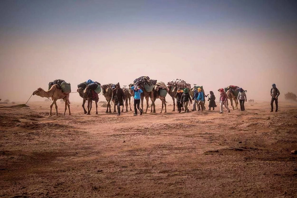 The major Erg Ez-zaher dunes, dunes roaring ahead to form the beautiful panorama